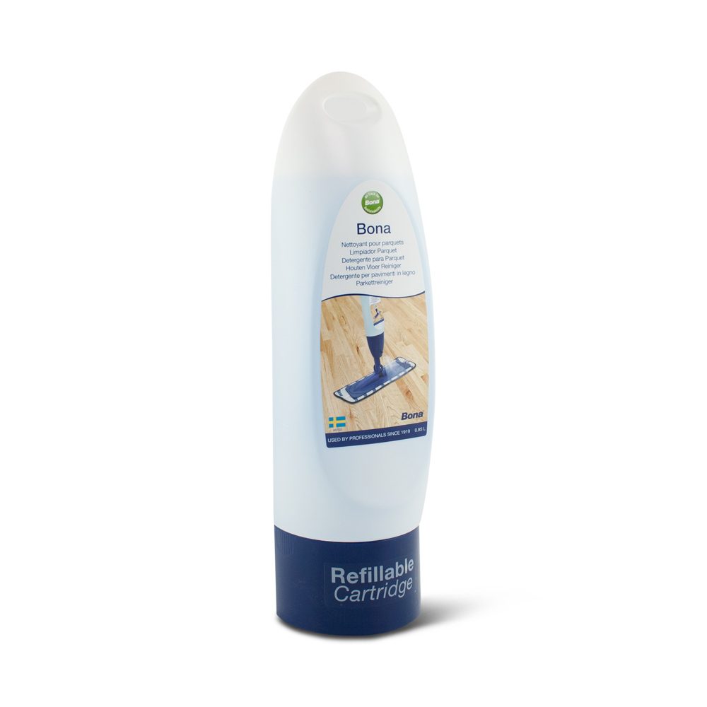 Bona Houten Vloer Reiniger Navulling Cartridge is bestemd voor de Bona Spray Mop. De Cartridge is gevuld met Bona Houten Vloer Reiniger. De inhoud hiervan is 0,85 liter. Deze cartridge is ook na te vullen met de Bona Houten Vloer Reiniger Navulling. Deze reiniger is bestemd voor vloeren die zijn gelakt. Heeft u een geoliede vloer? Gebruik dan de Bona Reiniger voor Geoliede Vloeren Cartridge.