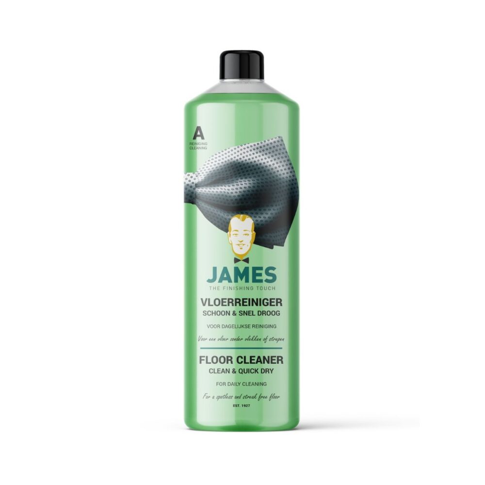James Vloerreiniger Schoon & Snel Droog is een milde, snel drogende reiniger voor dagelijks gebruik op alle vochtbestendige harde vloeren. Denk aan laminaat, PVC, vinyl, LVT, linoleum, marmoleum, kurk, tegels, rubber en natuur- en kunststeen. De formule op alcoholbasis reinigt effectief zonder een laag achter te laten en verandert het uiterlijk van je vloer niet.