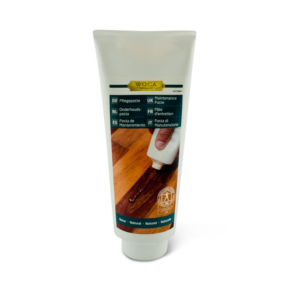 Woca Onderhoudspasta is een onderhoudsmiddel voor geoliede en voorgeoliede vloeren. Het zit in een handzame tube en is eenvoudig in gebruik. Het maakt u vloer extra slijtvast en vuil- en waterbestendig. Is op grote oppervlaktes goed aan te brengen met een poetsmachine. Het is verkrijgbaar in een naturel en een witte variant. Normale reiniging doet u met Woca Natuurzeep en periodiek met Woca Intensiefreiniger, breng hierna wel een nieuwe laag onderhoudsolie of pasta aan.